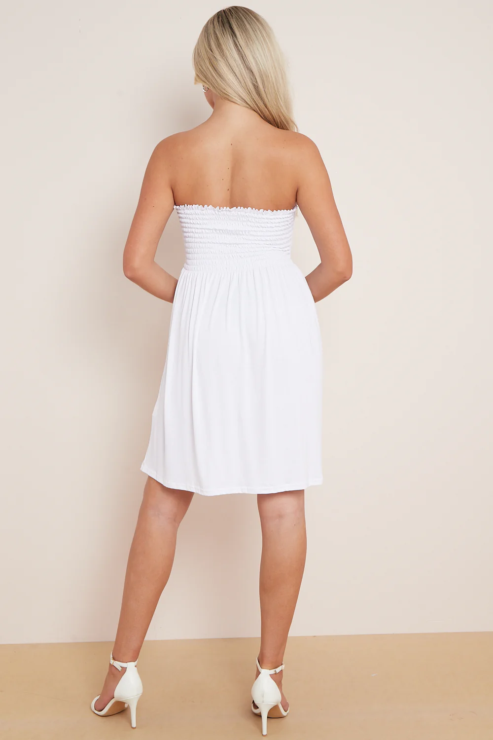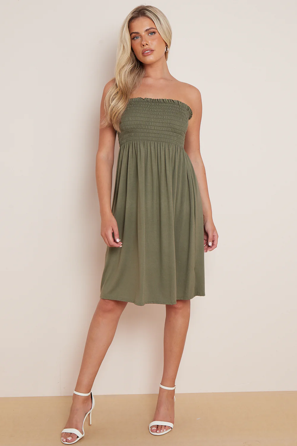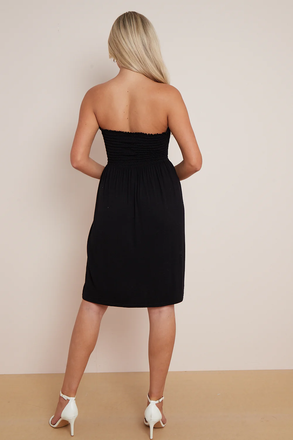 The Aftershock London Bandeau Dress is a beautiful summer dress designed in a soft, lightweight viscose weave with a smocked bodice.