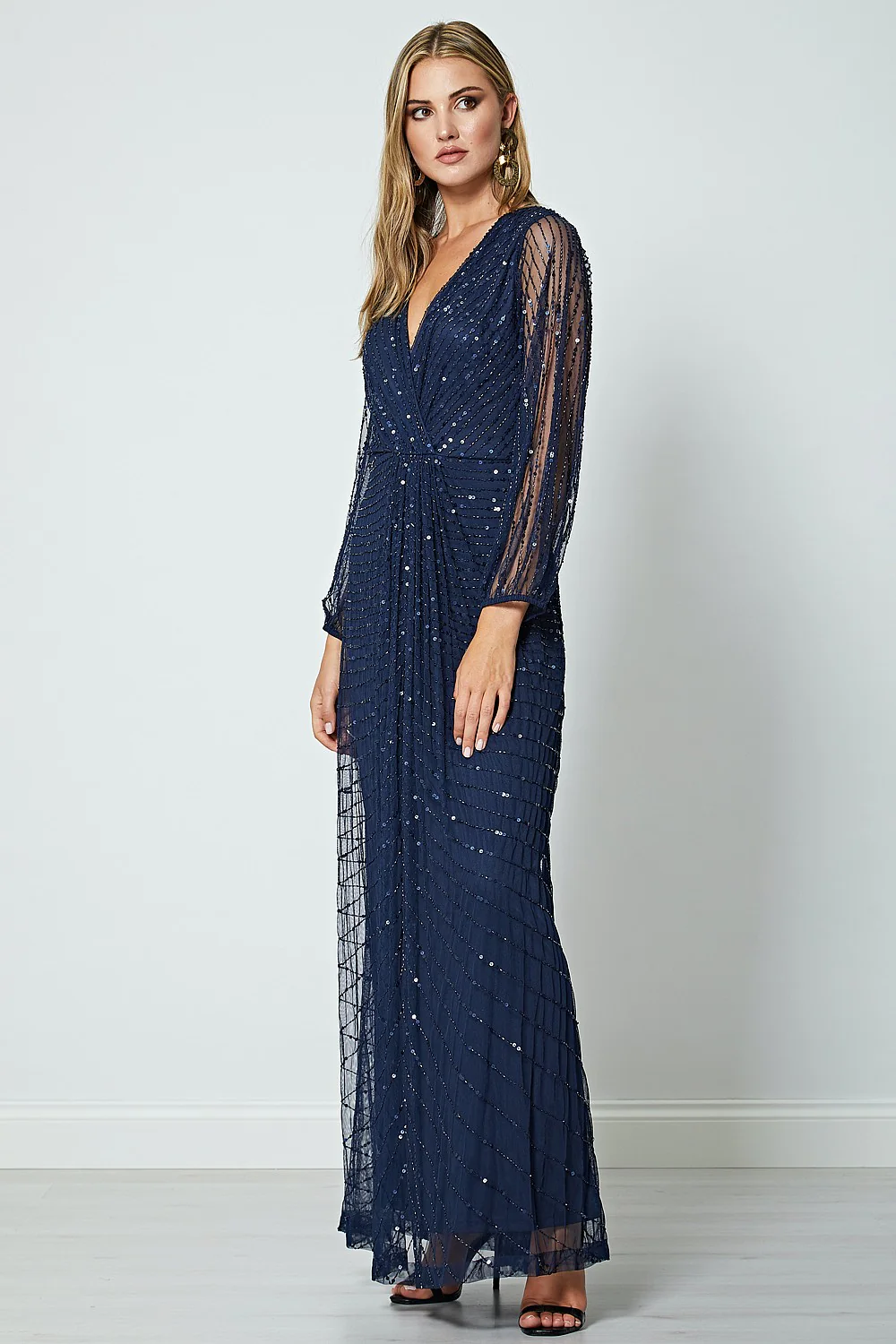 DAISIANNE SEQUIN LONG SLEEVE WRAP MAXI DRESS