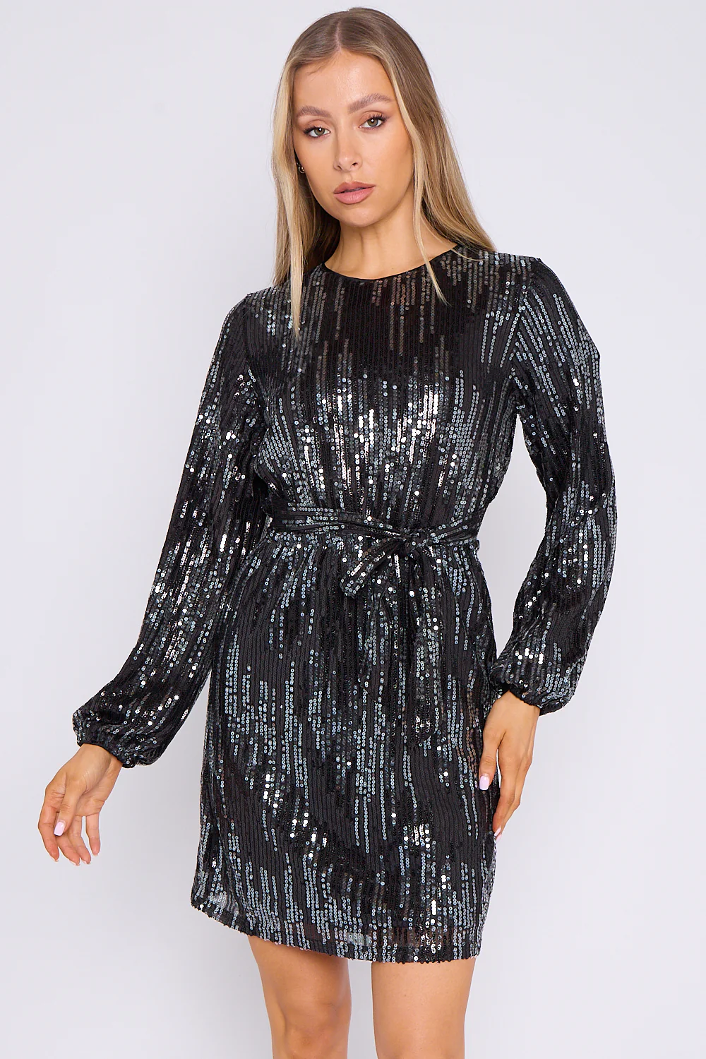 ELLE BLACK SILVER SEQUIN LONG SLEEVE DRESS