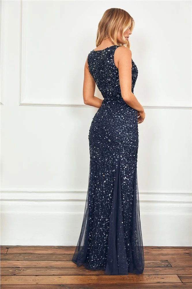 GISELLE NAVY SEQUIN MAXI DRESS FEATURING INSERTS