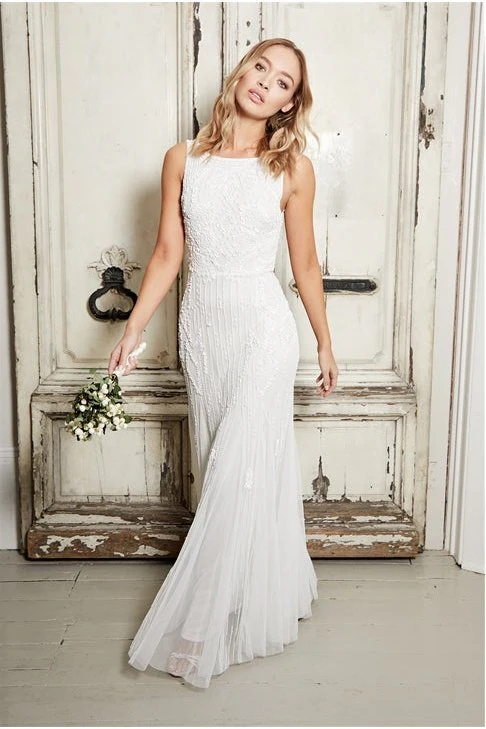 Make it all about you with Aftershock London! An elegant high neck maxi dress, designed with a low V back and embellishment all over.