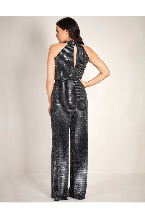 LUCIA SEQUIN BLACK HALTERNECK JUMPSUIT