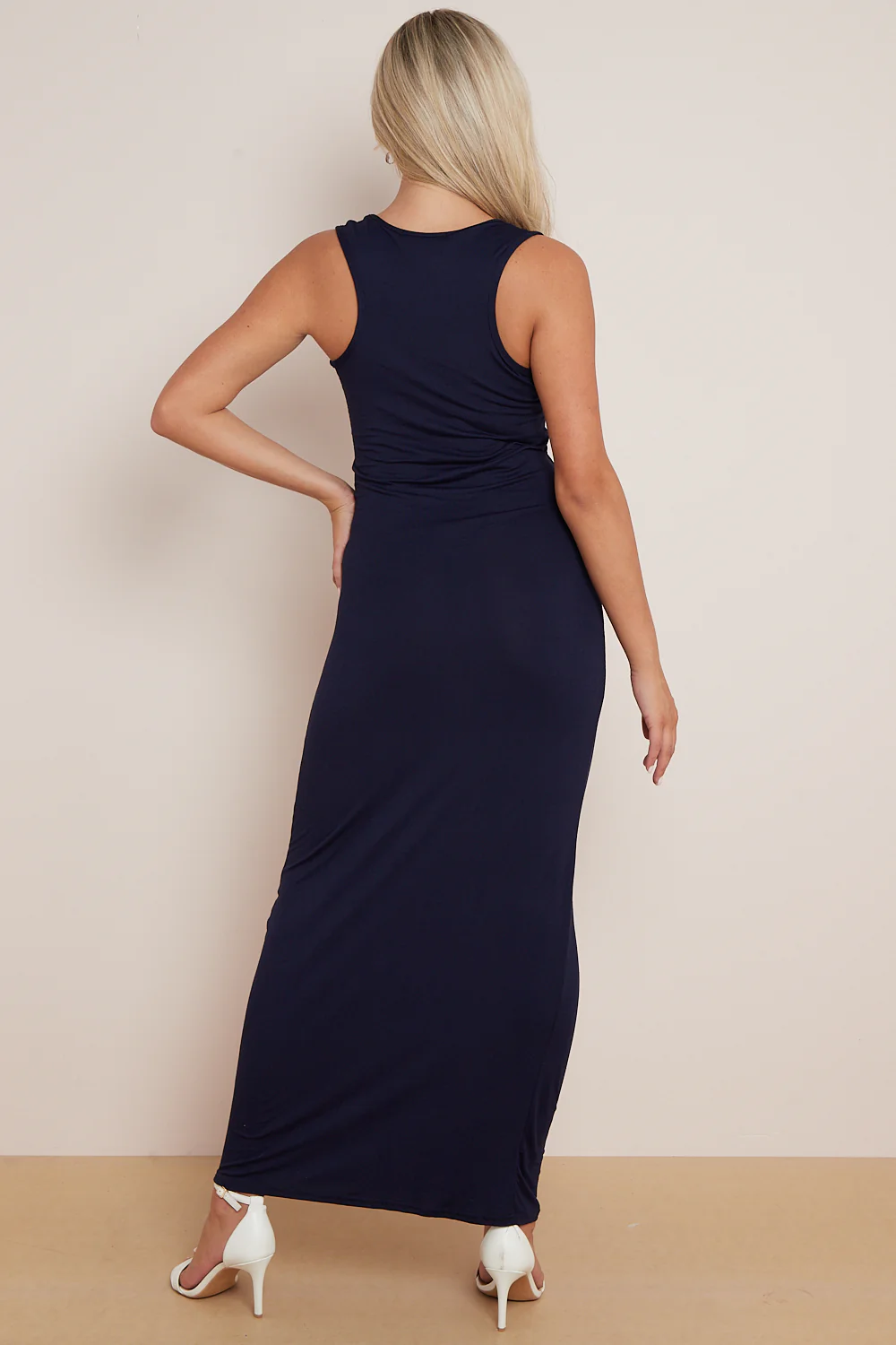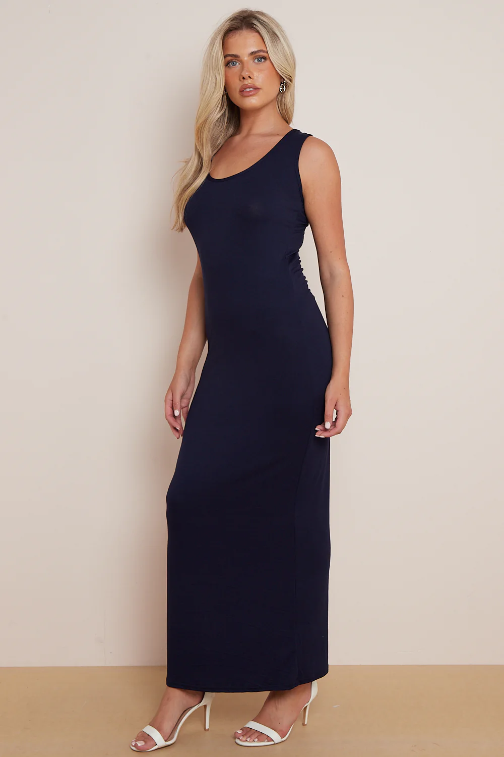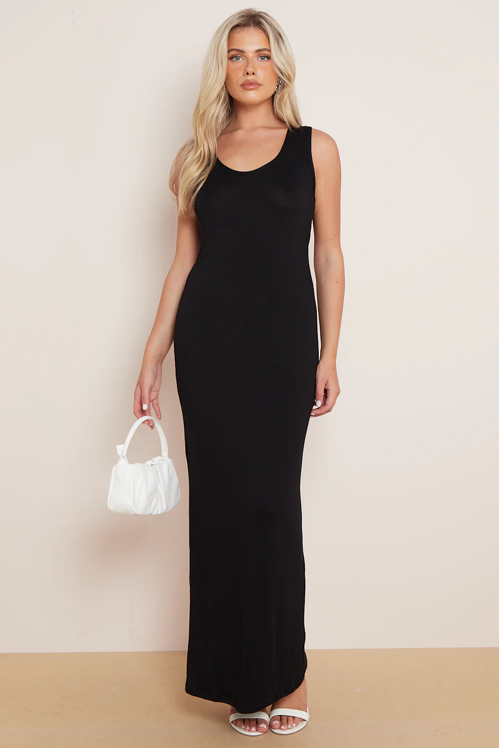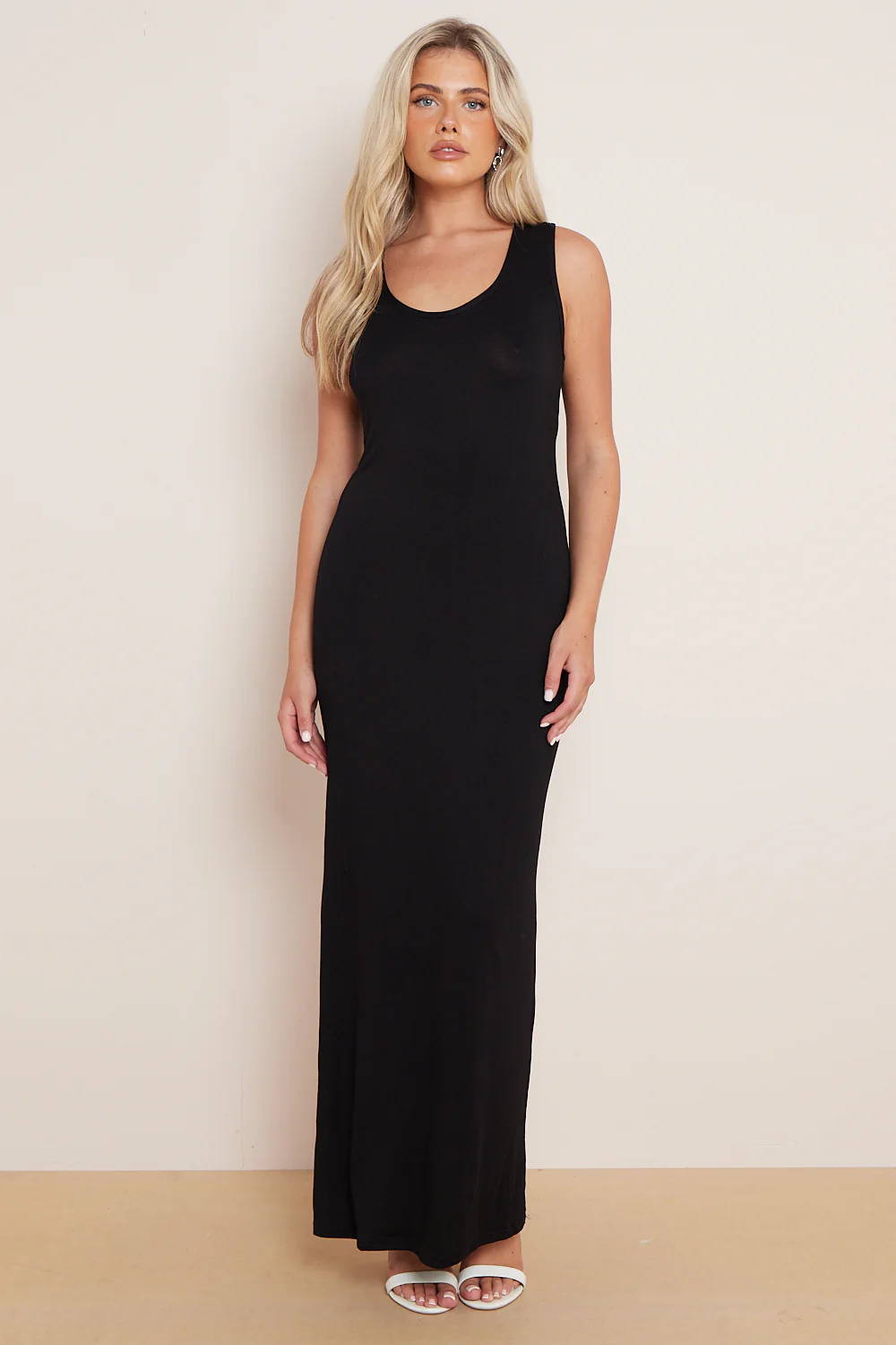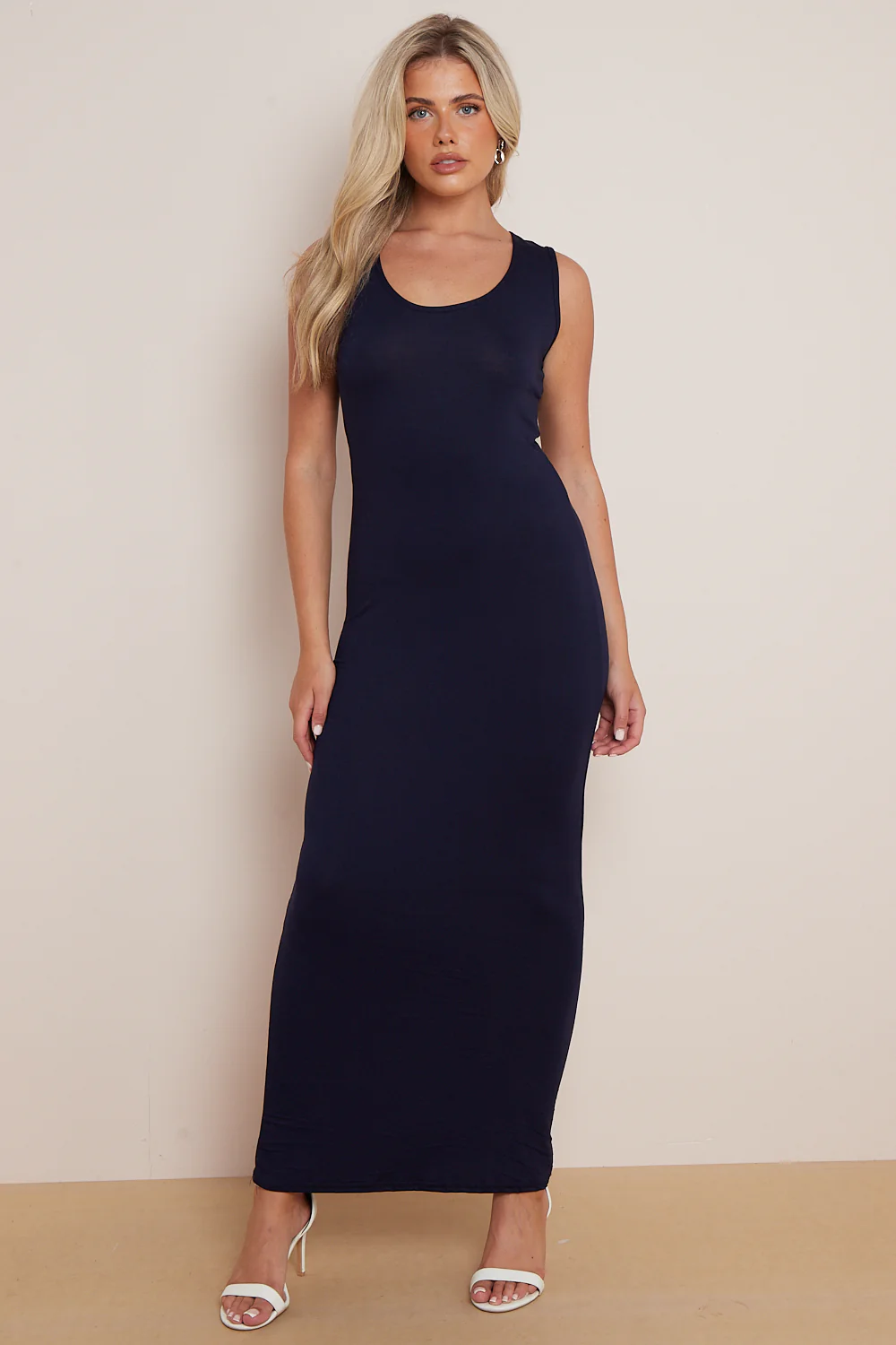 The Aftershock London Racerback Maxi Dress is a summer maxi dress in soft jersey that features a round neckline and fitted design