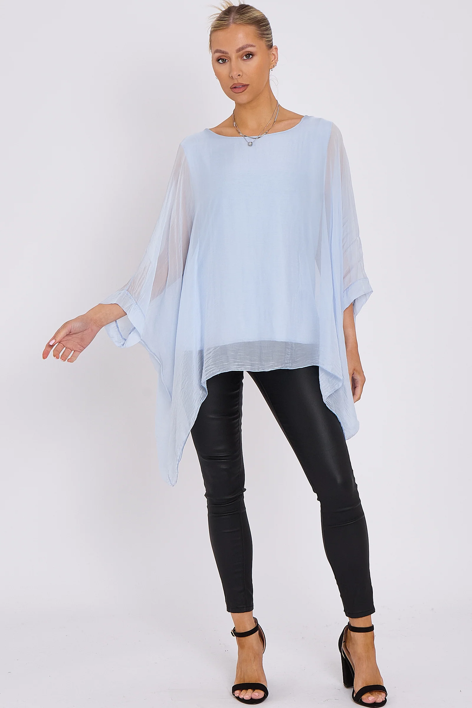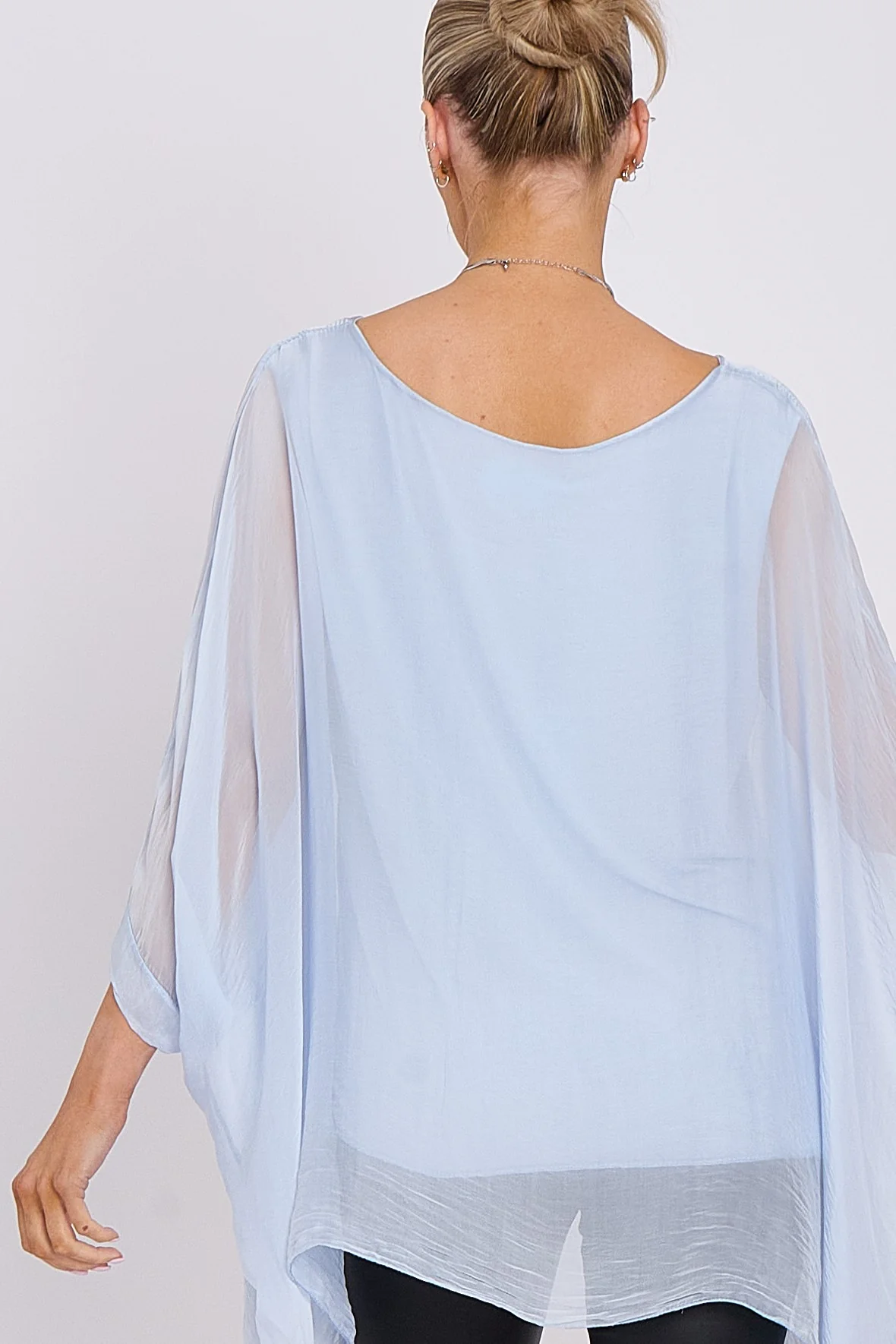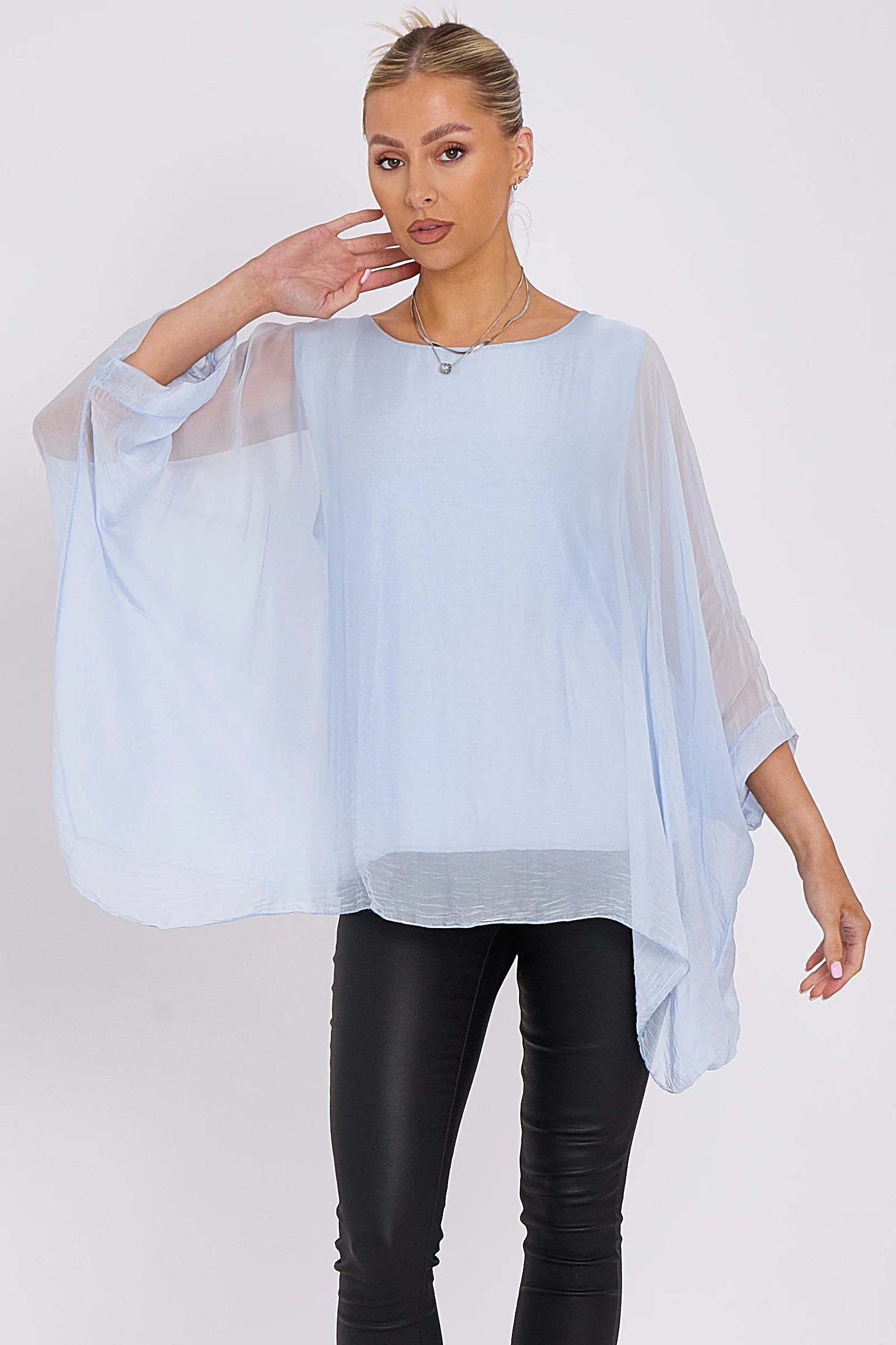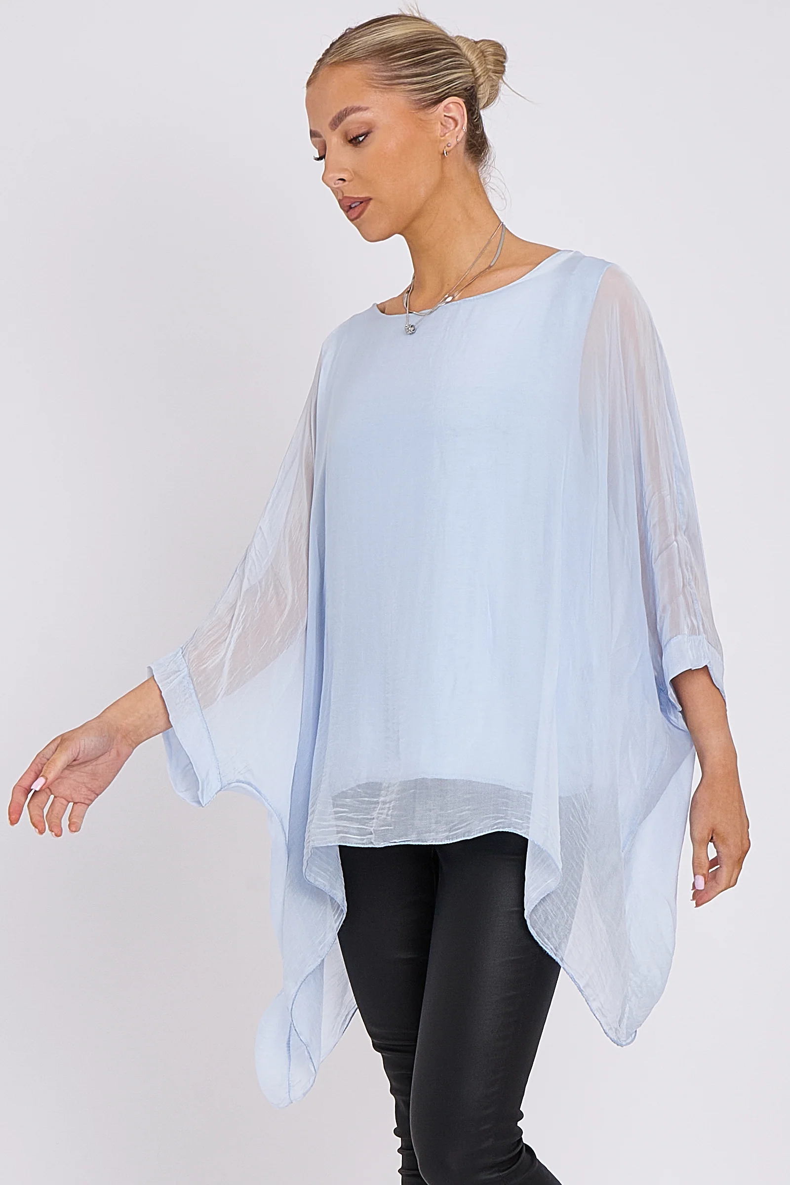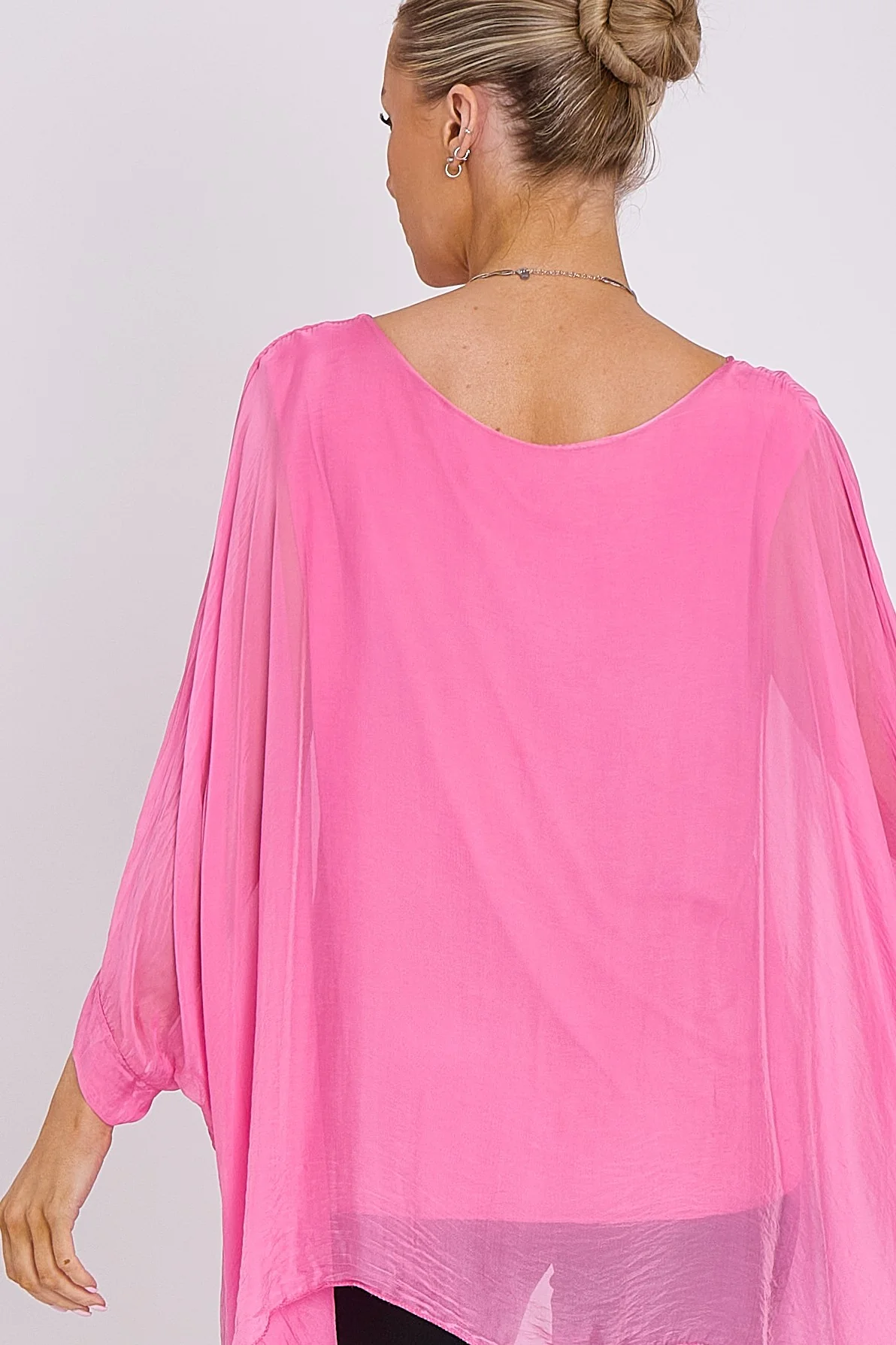 The Aftershock London Silk Blouse is an elegant top that features a round neckline, batwing 3/4 length sleeves and a soft viscose lining.