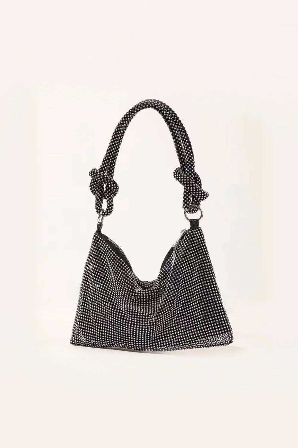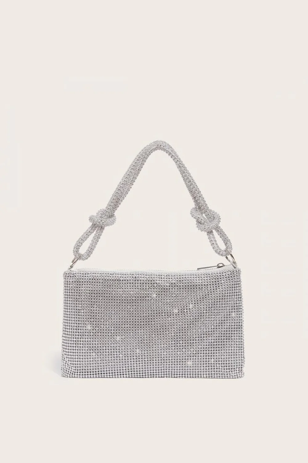 Decorated with delicate crystals, the Aftershock London Evening Bag is perfect for a night out. Crafted to a compact silhouette, this evening shoulder bag has plenty of space for your essentials. Zip closure and statement knot handle finishes the design. Lined.