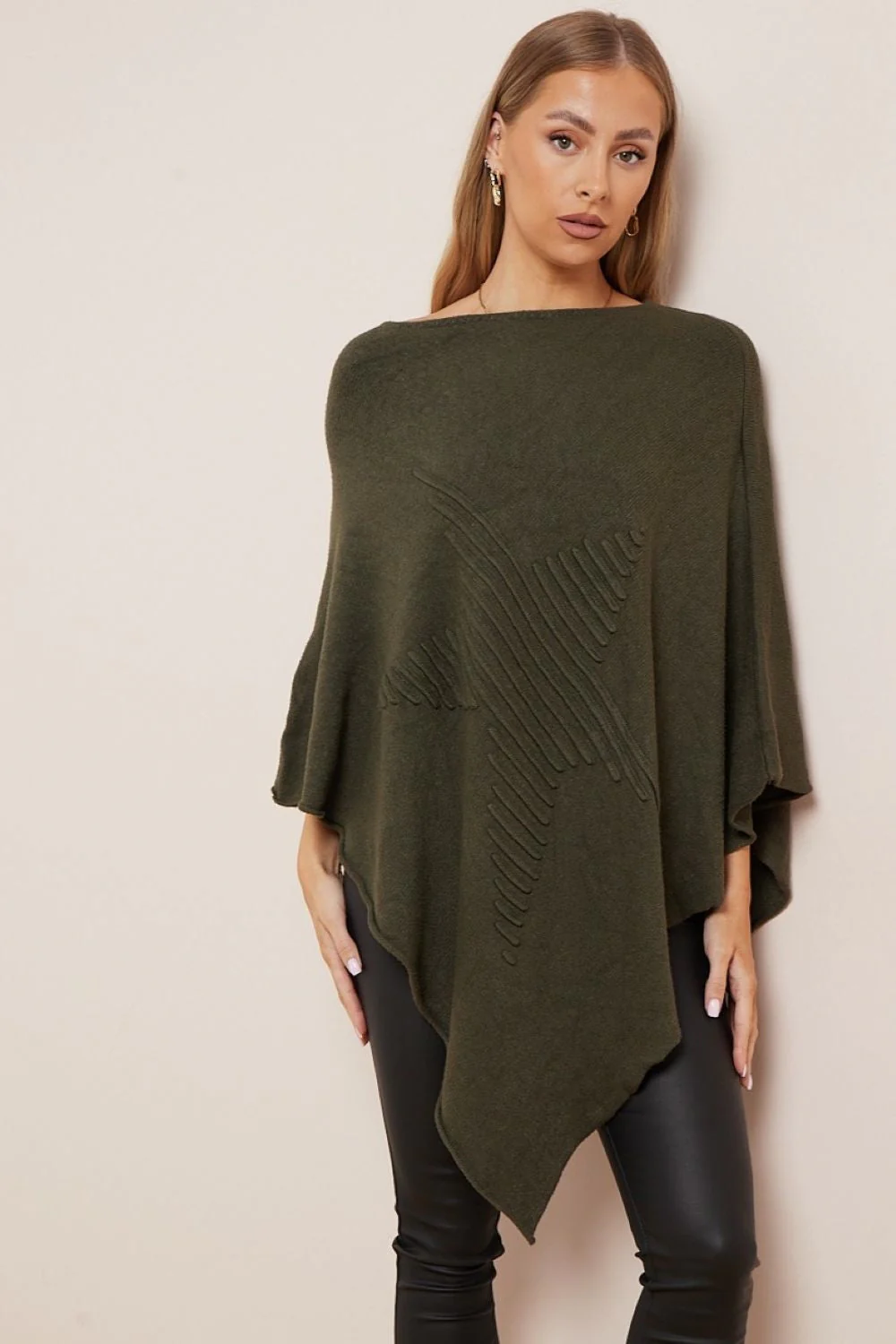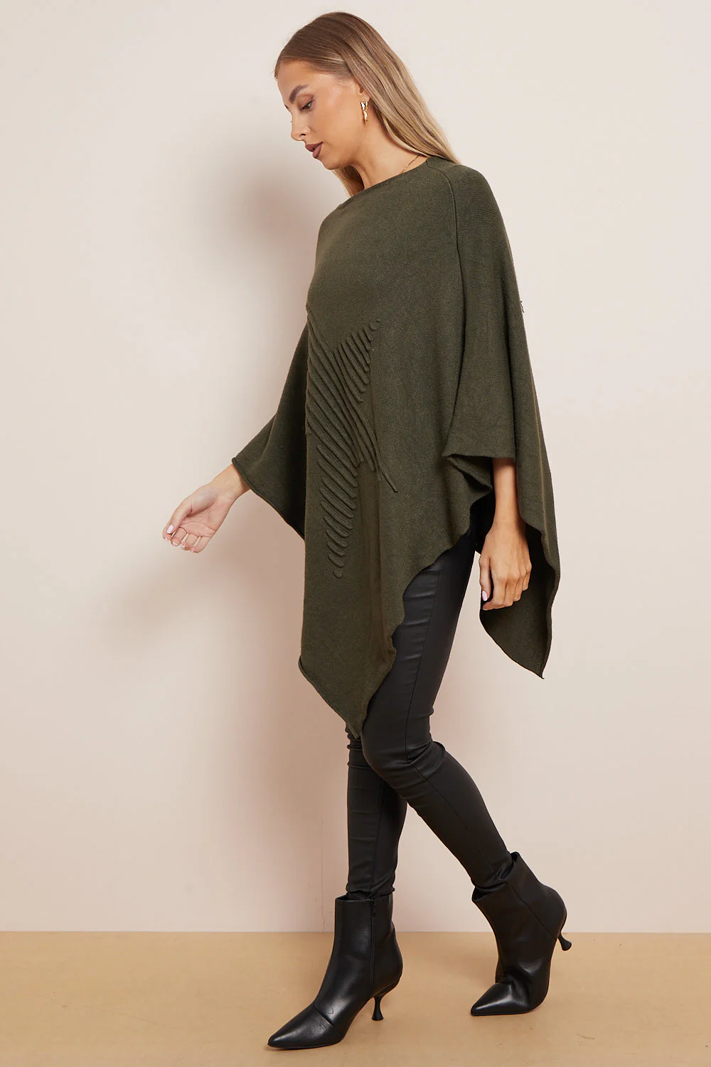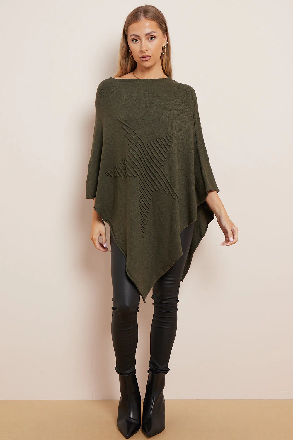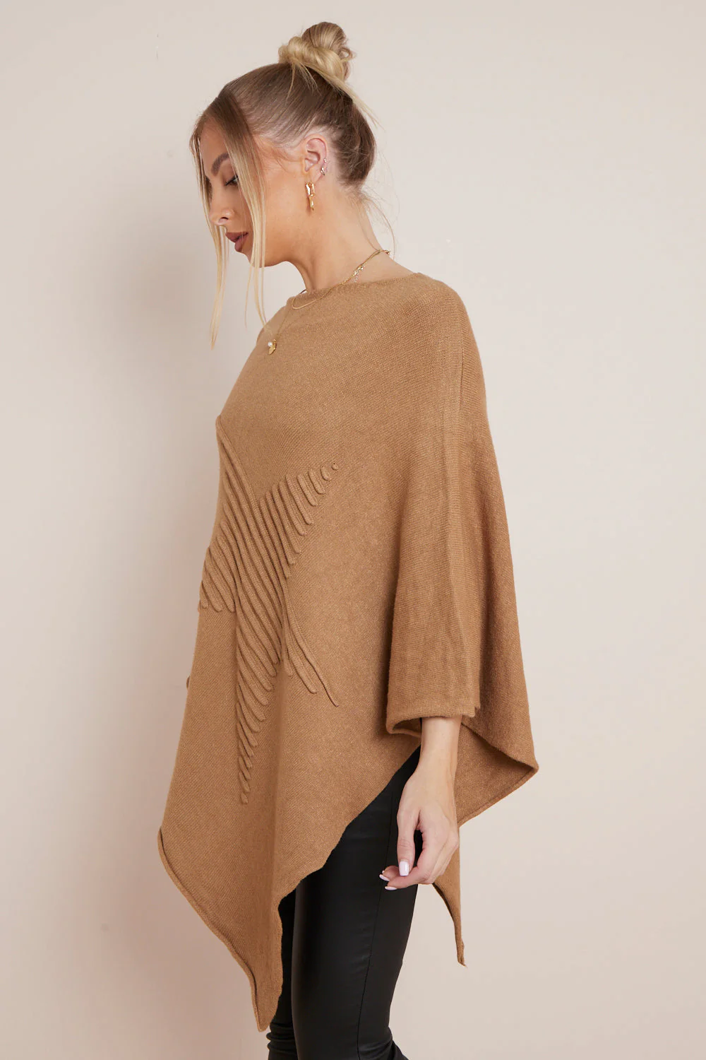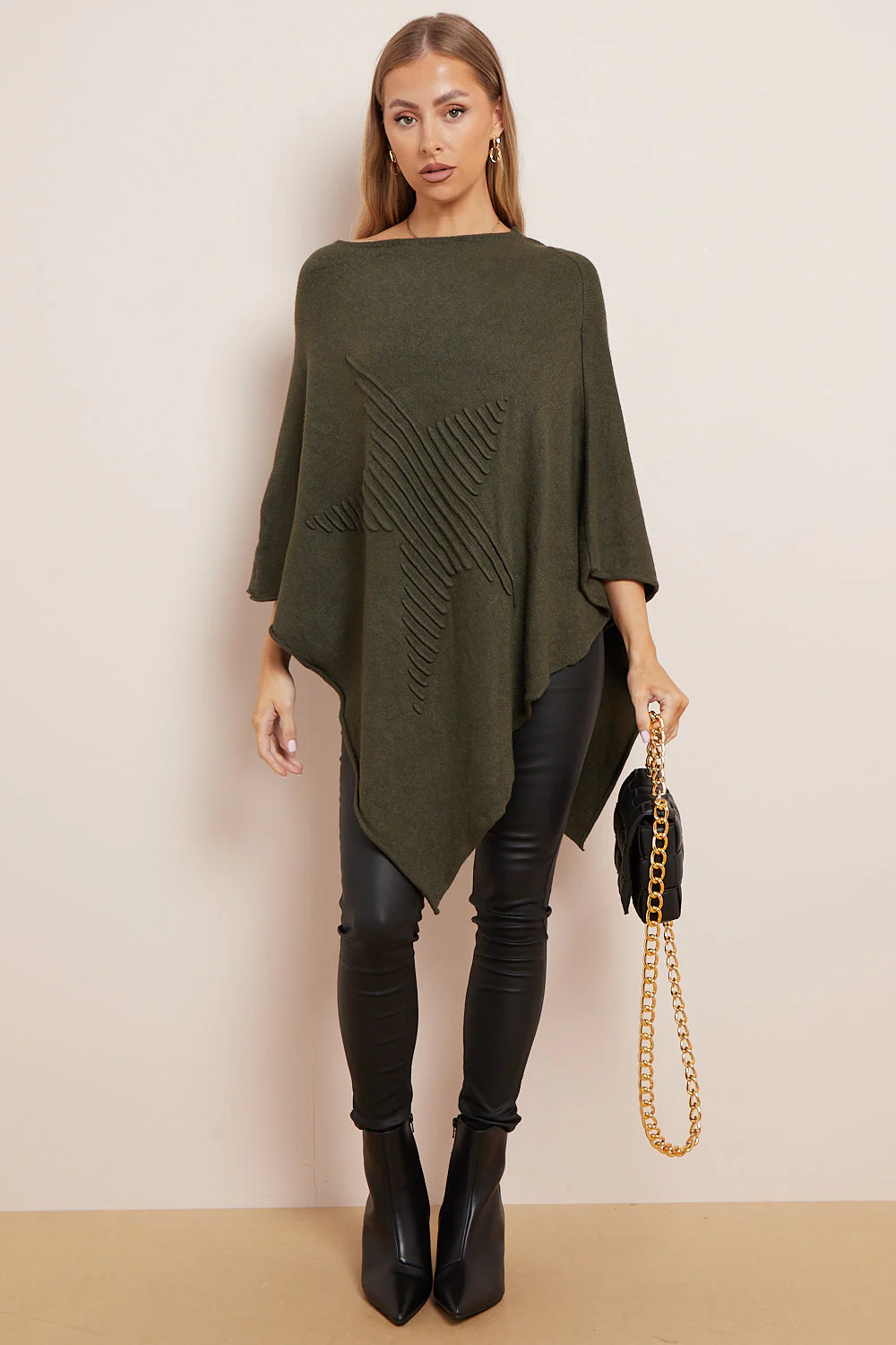 Crafted from a soft viscose blend, this cosy Aftershock London poncho features a boat neckline, asymmetric hem and ribbed star detail at the front. Layer it over a blouse or turtleneck top for a smart casual look. This style is perfect for Autumn/Winter season.
