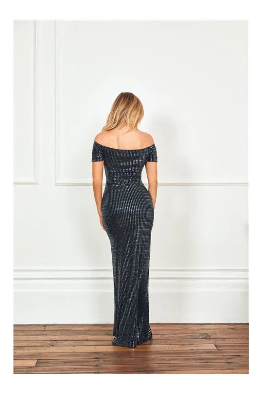 SYDNEY SEQUIN BLACK OFF SHOULDER MAXI DRESS