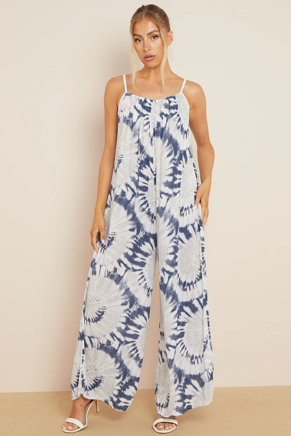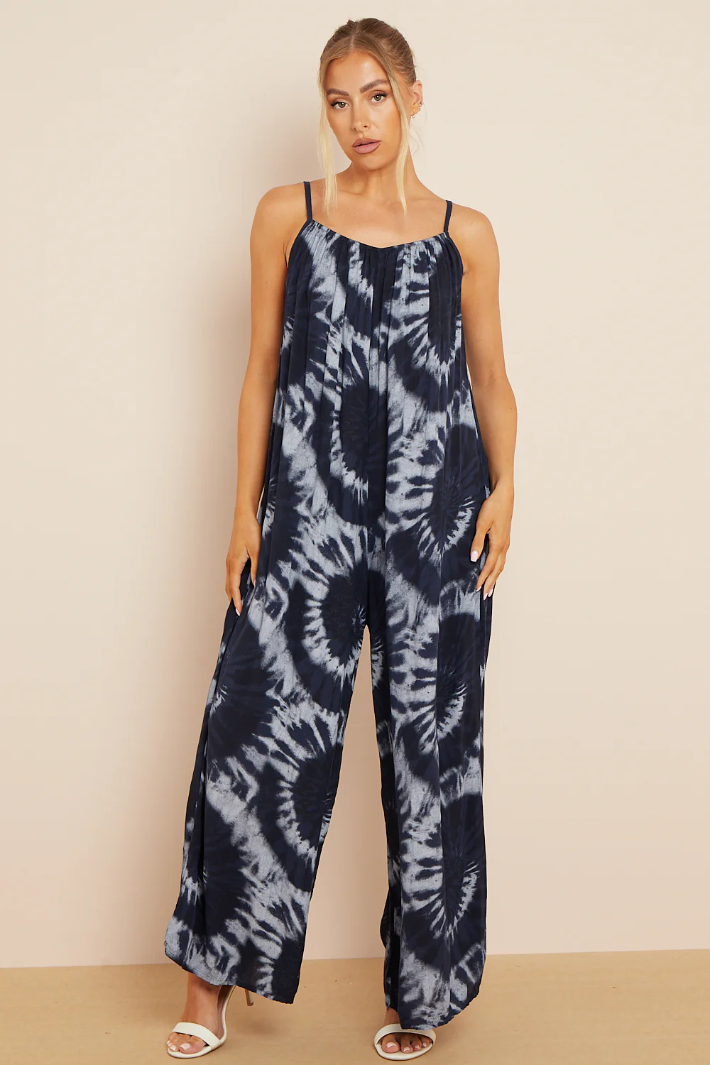 Airy and breathable, the Aftershock London Tie-Dye Strappy Jumpsuit is crafted from a soft viscose blend. This relaxed style features a round neckline with gatherings, thin shoulder straps and wide leg.