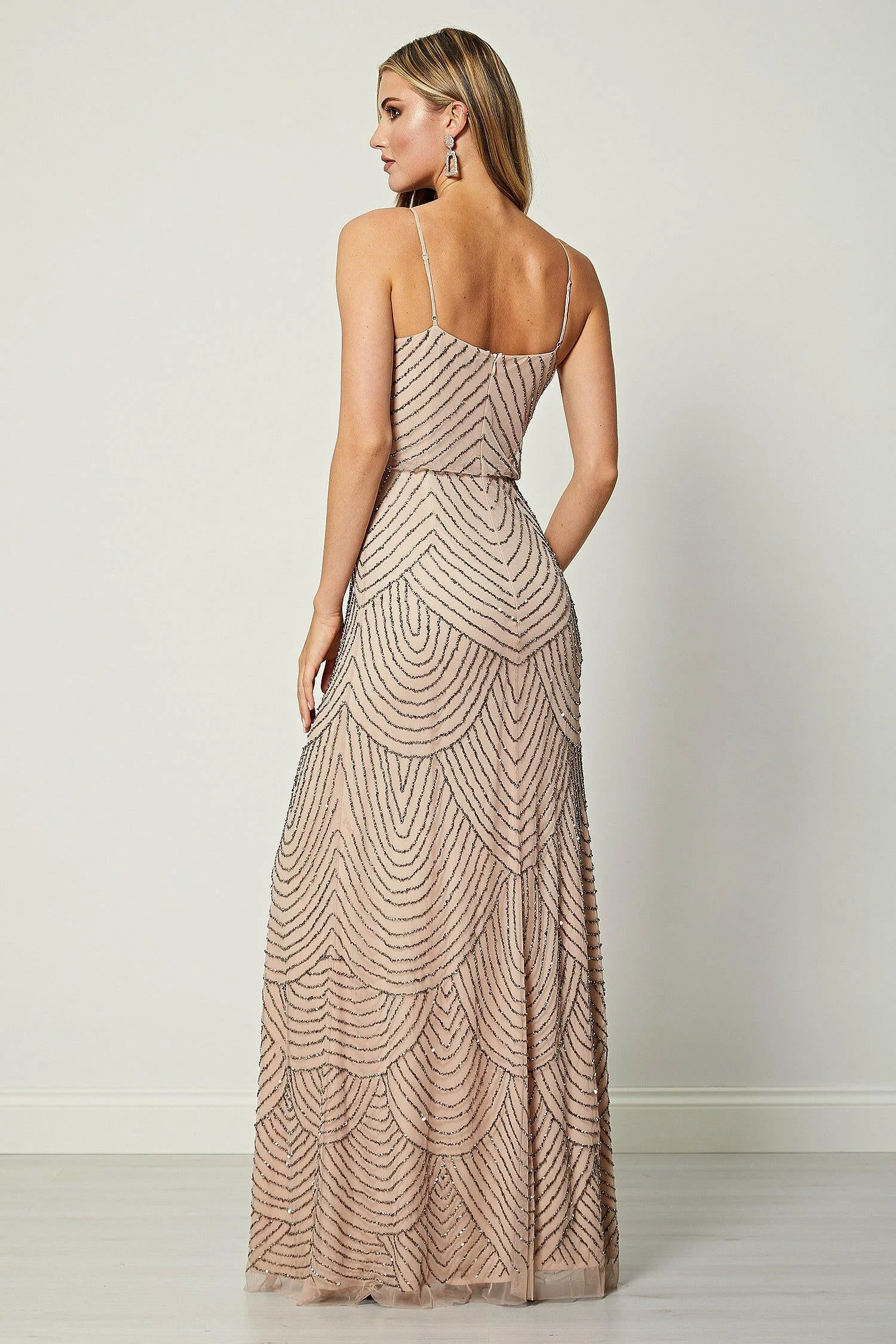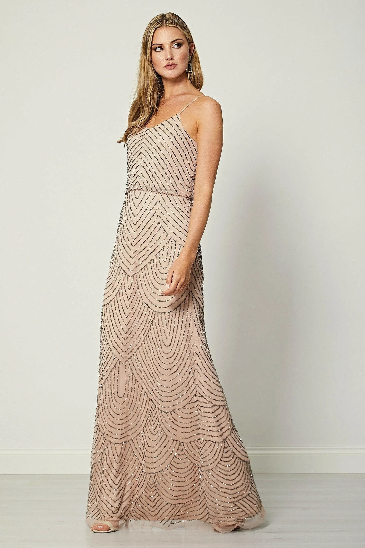 Viviana Pink Cami Sequin Stripe Embellished Maxi Dress