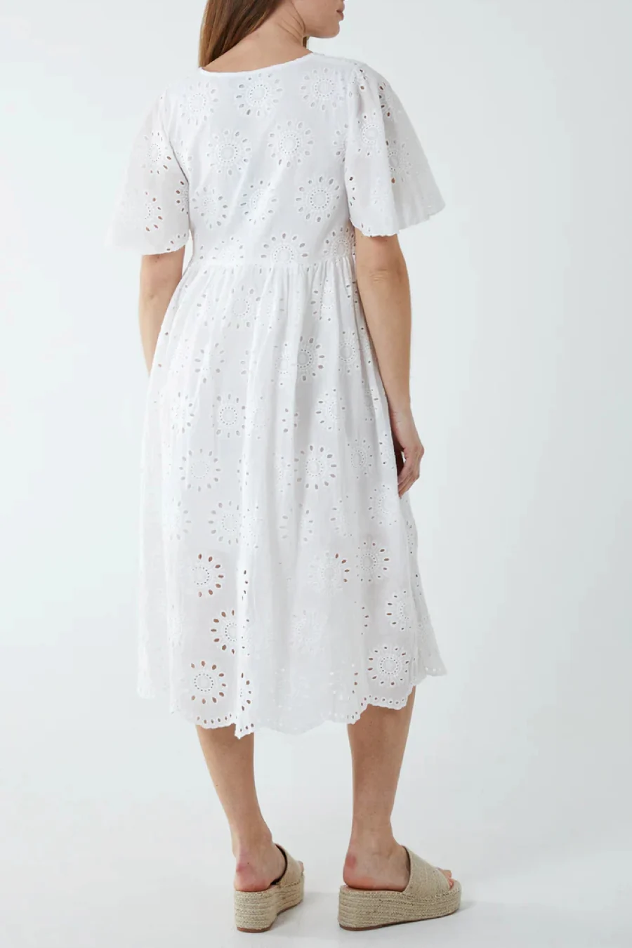 White Broderie Button Midi Dress